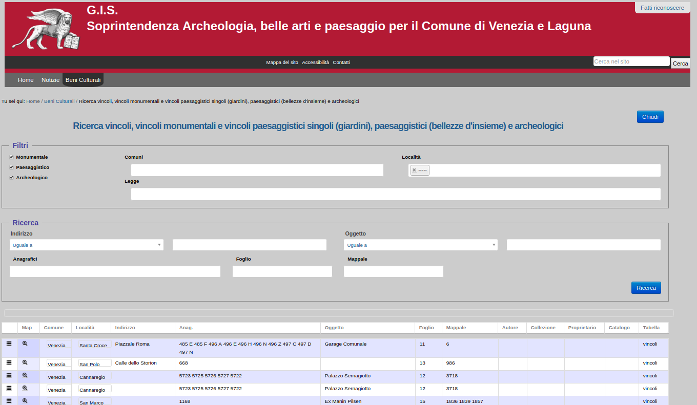 SIT della Soprintendenza BAP di Venezia e Laguna